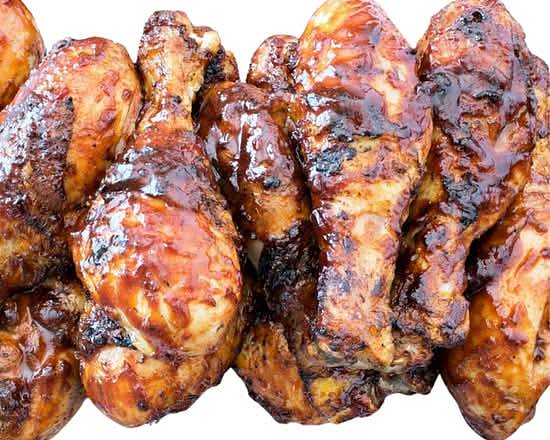 Eight Grilled Chicken wings, offering options in peri-peri, creamy, tandoori, or pesto flavors.